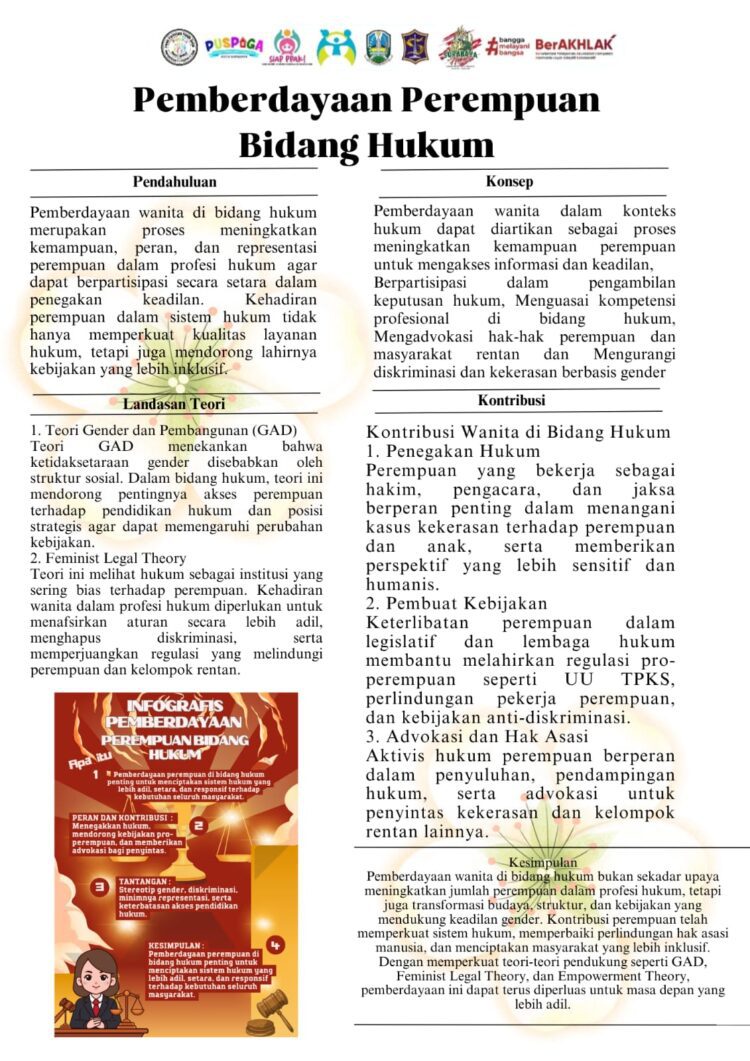 Berikut beberapa poin penting terkait Pemberdayaan Perempuan di Bidang Hukum: