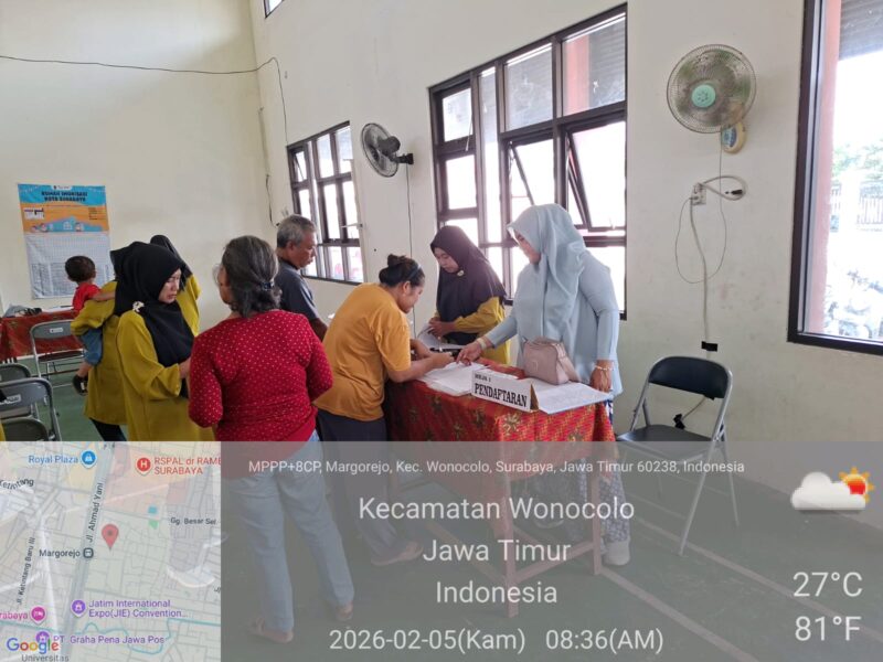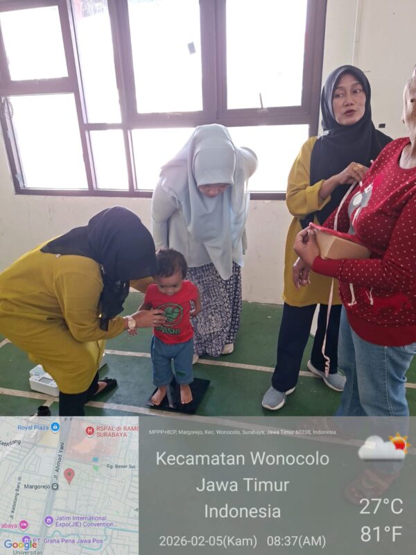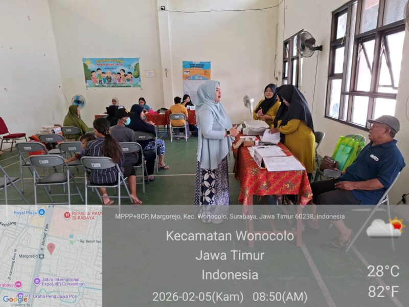 Kegiatan ini dilaksanakan pada hari Kamis, 5 Februari 2026 di Gedung Serbaguna RW. 02 Kelurahan Margorejo Kecamatan Wonocolo. Posyandu Keluarga ini diselenggarakan setiap 1 bulan sekali bertujuan untuk memberikan Pelayanan Prima tentang Kesehatan untuk masyarakat setempat, dimana di dalamnya akan ada Pengukuran Berat Badan, Tinggi Badan, Lingkar Lengan, Lingkar Perut,Imunisasi, Cek Kesehatan lengkap,Senam Lansia dan Pemberian Makanan Tambahan.