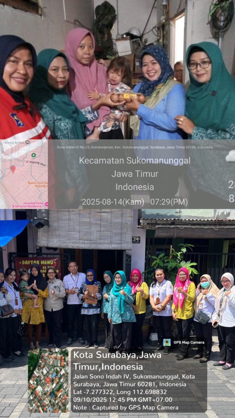 Dalam rangka penilaian Lapangan Finalis Bersama Mewujudkan Surabaya Emas (BWSE) Jilid IV Tahun 2025 sebuah program yang digagas Pemerintah Kota (Pemkot) Surabaya untuk mencegah dan eliminasi stunting (kekerdilan) pada balita, Ketua Tim Penggerak PKK selaku Bunda PAUD Ibu Emmy Dyah Widyanti,A.Md melaksanakan kunjungan untuk memberikan edukasi dan pemberian makanan bergizi bagi balita.