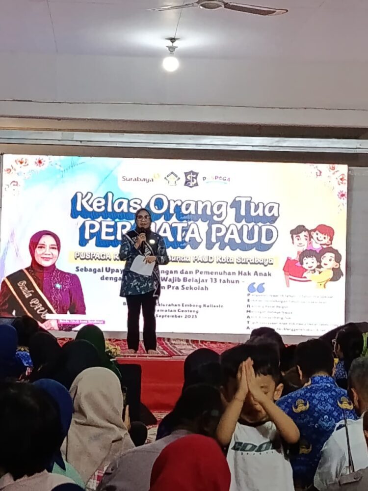 Kegiatan PUSPAGA kali ini begitu spesial dan cerah ceria, bersamaan dengan kedatangan Ketua Bunda PAUD Kota Surabaya Ibu Rini Indriyani Eri Cahyadi, S. Farm.Ap, Ketua Bunda PAUD Kecamatan Genteng Putri Wulandari, S.I.Kom. , dan Ketua Bunda PAUD Kelurahan Embong Kaliasin Ibu Deby Yumi Sulistyanti. Kegiatan tersebut dilaksanakan pada 17 September 2025 bertempat di Balai RW. 13 Kelurahan Embong Kaliasin.