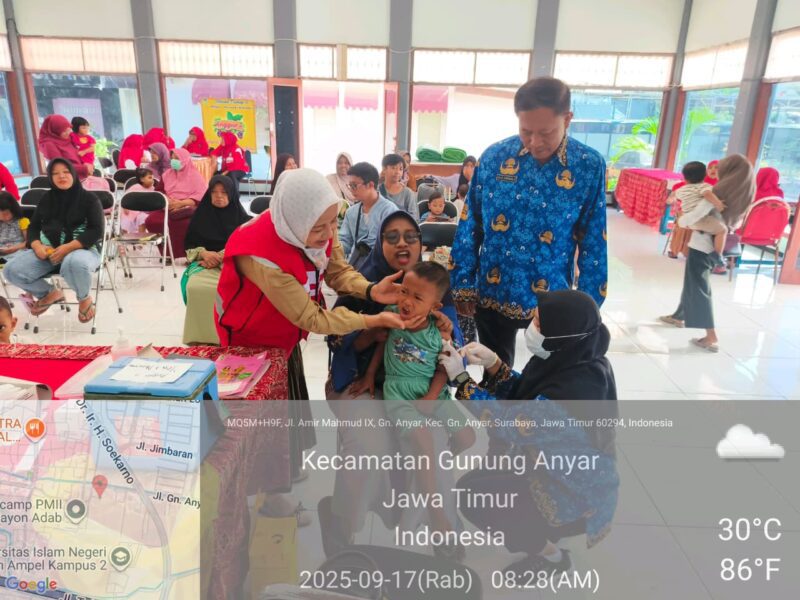 di wilayah RW 01 oleh Camat @kecamatansukolilosurabaya dan Ketua @pkk_dwpkec.sukolilo bersama Lurah Medokan Semampir. Komitmen bersama untuk mencegah campak melibatkan partisipasi aktif dari masyarakat, pemerintah, dan lintas sektor untuk memastikan cakupan imunisasi lengkap bagi anak-anak dan penerapan Perilaku Hidup Bersih dan Sehat (PHBS) seperti mencuci tangan, menggunakan masker, serta melakukan isolasi mandiri jika terinfeksi. Selain itu, pemerintah dan tokoh masyarakat perlu terus mengedukasi pentingnya vaksinasi, memastikan stok vaksin tersedia, dan melakukan surveilans serta respon cepat jika terjadi kasus campak untuk melindungi generasi masa depan dari penyakit yang berpotensi mematikan ini.
